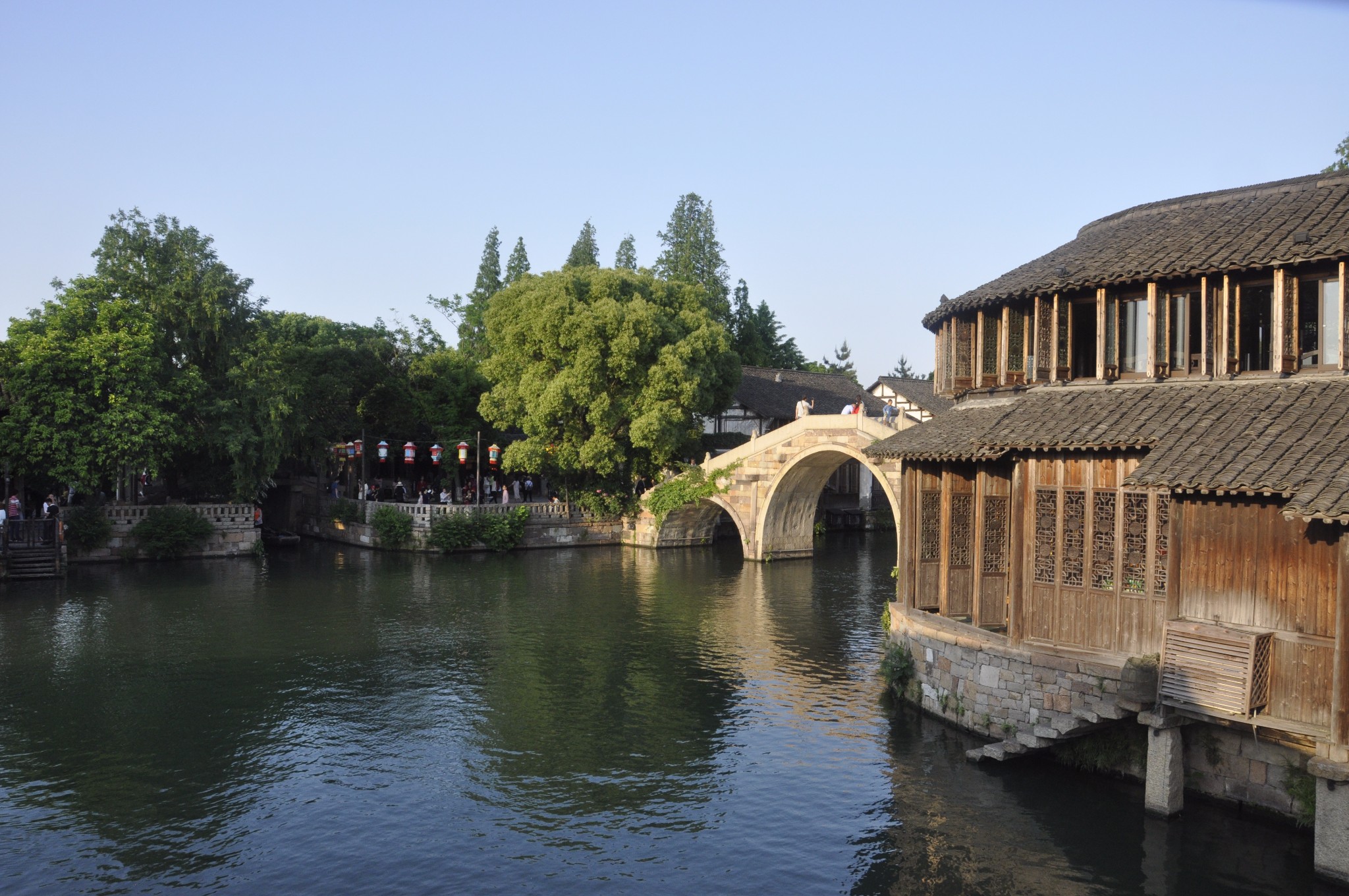70多座小桥将这些小岛串连在一起,河流密度和石桥数量均为全国古镇之最。例如,通济桥和仁济桥两桥成直角相邻,不管站在哪一座桥边,都可以看到一个桥洞里的另一座桥,故有“桥里桥”之称。“桥里桥”是乌镇最美的古桥风景,堪称桥景一绝。