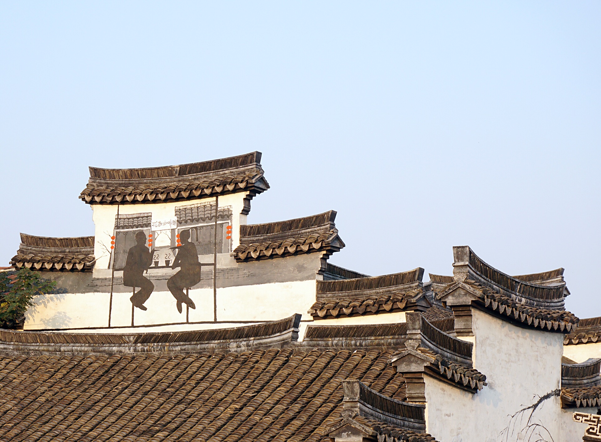 石皮弄在西塘西街的尽头,全长68米,由216块厚度仅三厘米的石板铺就而成,是王家尊闻堂与种福堂之间的过道。