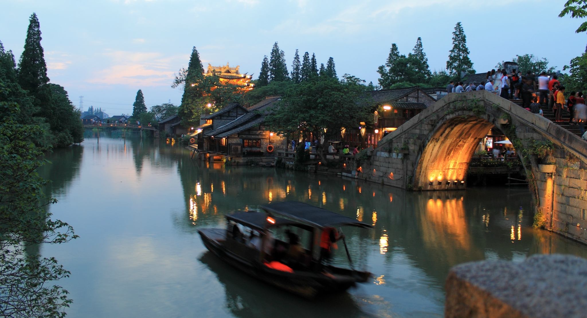 三、西栅景区西栅景区位于西大街,毗邻京杭大运河,有公路直通江苏苏州和桐乡市区,交通便利。与东栅以旅游观光为主不同,西栅以商务旅游、休闲度假为主。占地4.92平方公里,河道9000多米,古桥72座,河道密度和石桥数均为中国古镇之最。