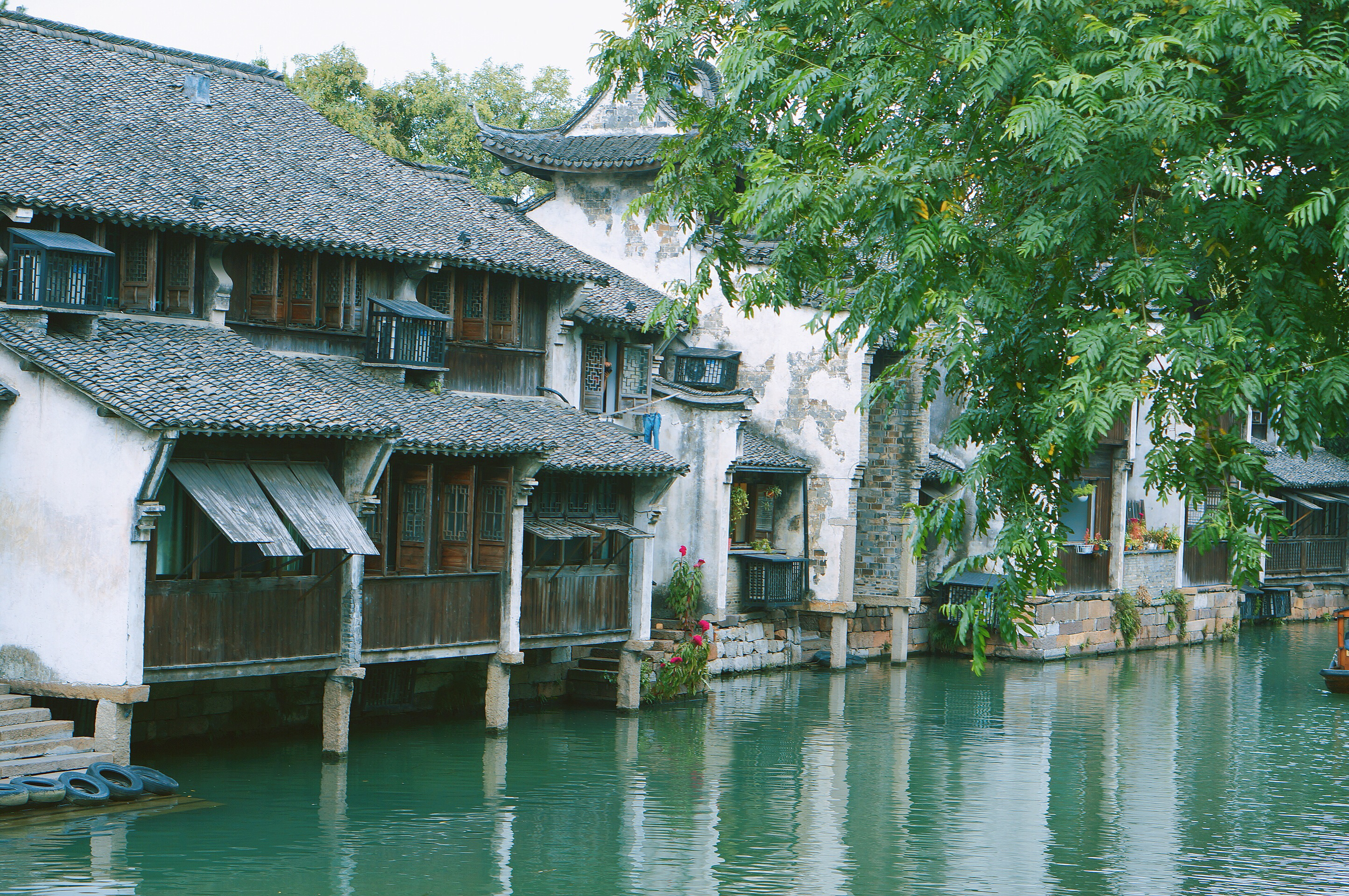在西栅靠近渡口那里。乌镇十字形的内河水系将全镇划分为东、南、西、北四个区域,人称东、南、西、北栅,所有的房屋都是临水而居,枕河筑屋,远远望去像是漂浮在水中的岛屿;站在桥上透过熹微的晨光,看远处悠悠飘过来一条乌篷船,颇有点“你在桥上看风景,看风景的人在楼上看你”的感觉。