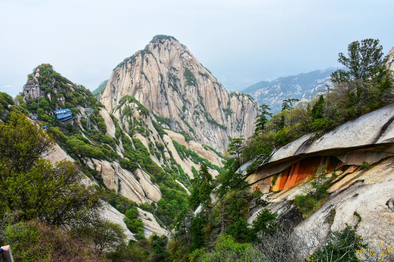 华山著名景点介绍: 1、镇岳宫镇岳宫古称上宫,位于陕西省华阴市华山玉女、莲花、落雁三峰之间的山谷中。镇岳宫倚山间峭壁而筑,单进一院落,供奉镇守华岳之神西岳大帝。该宫是华山诸峰间较大的道教宫观。
