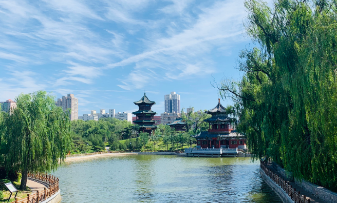 一、迎泽公园迎泽公园,因位于古太原城门附近而取名。它居于市中心宽阔的迎泽大街中段,交通便利,视野开阔,是太原市内最大的公园。迎泽公园,总面积666900平方米,迎泽湖水面占总面积的三分之一。主要有科普区、风景区以及游乐区域。