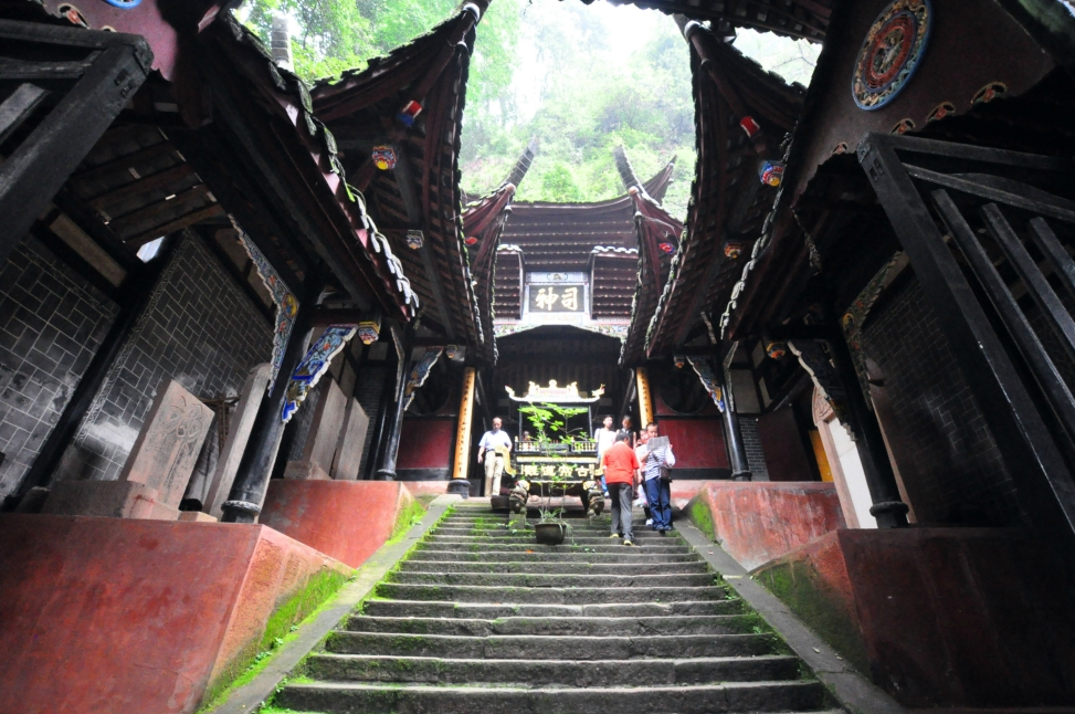 始建于晋代,现存庙宇为清朝同治年间所建,上面有“天下第五名山”、“青城第一峰”等摩崖石刻。