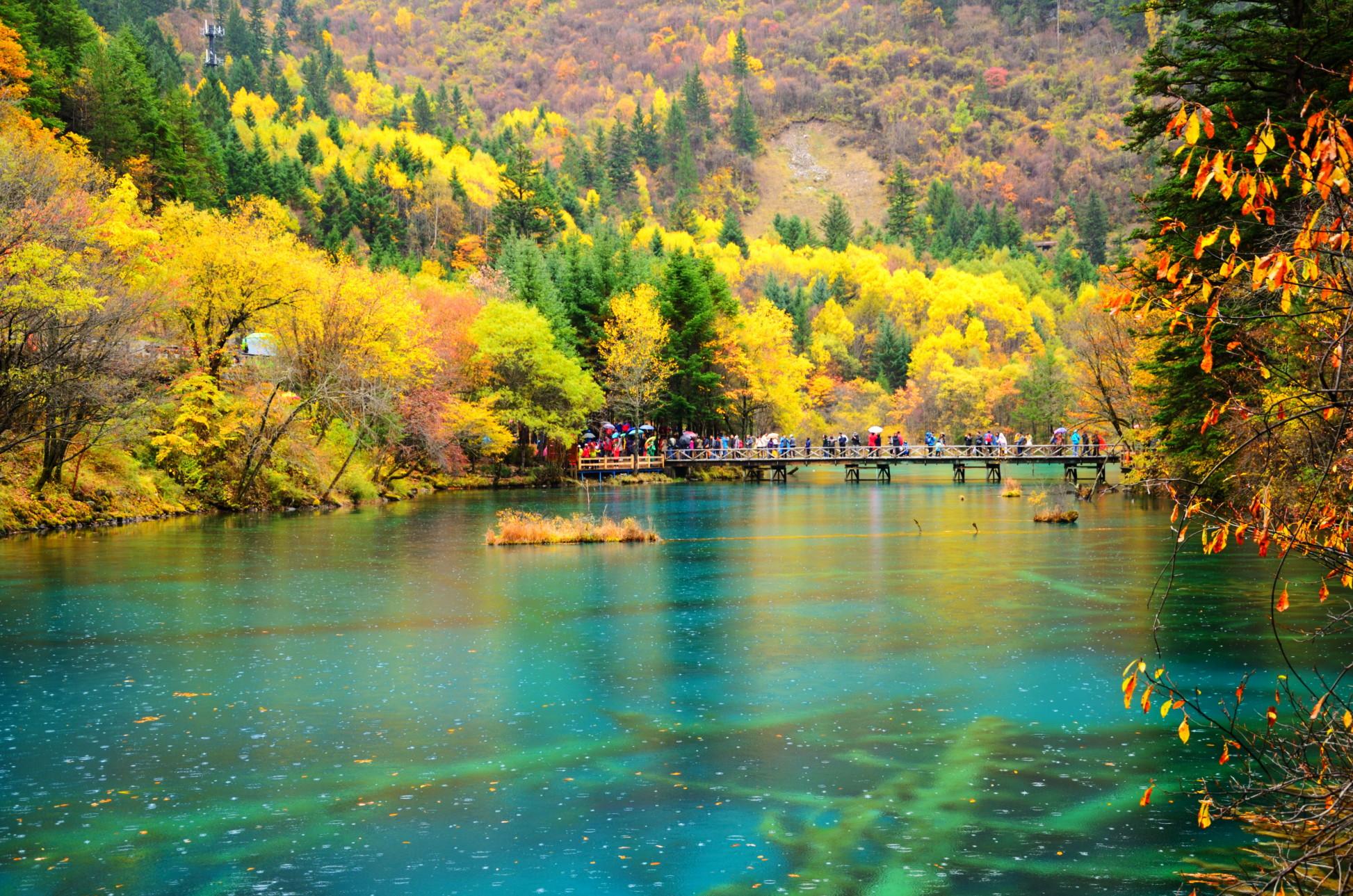 九寨沟海拔1900-3100米,属高原湿润气候,山顶终年积雪。黄龙海拔高度在4000米左右,气候湿润寒冷,一年中冬季漫长,夏天无几日,春秋相连。