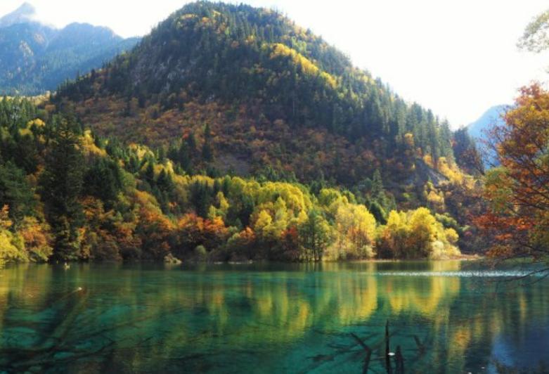 五花海位于九寨沟三条沟的日则沟中段,孔雀河上游,由于海底的钙华沉积、各种色泽艳丽的藻类以及岸边五彩斑斓的林木倒影,使得五花海呈现出鹅黄、藏青、墨绿、宝蓝等各种颜色,故称“五花海”,五花海湖水颜色多样,五彩斑斓,素有九寨精华之称。
