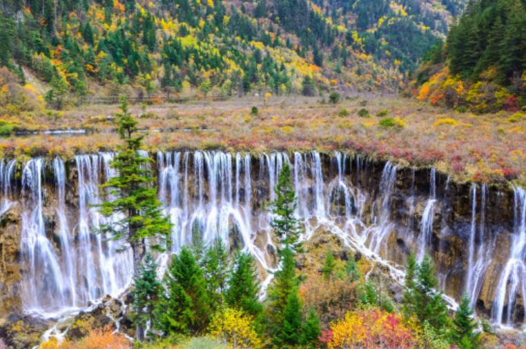 诺日朗瀑布也是九寨沟四大瀑布里最具特色的瀑布之一,它海拔2365米,瀑宽270米,高24.5米,是中国大型钙化瀑布之一,也是中国最宽的瀑布。藏语中诺日朗意指男神,也有伟岸高大的意思,因此诺日朗瀑布意思就是雄伟壮观的瀑布。