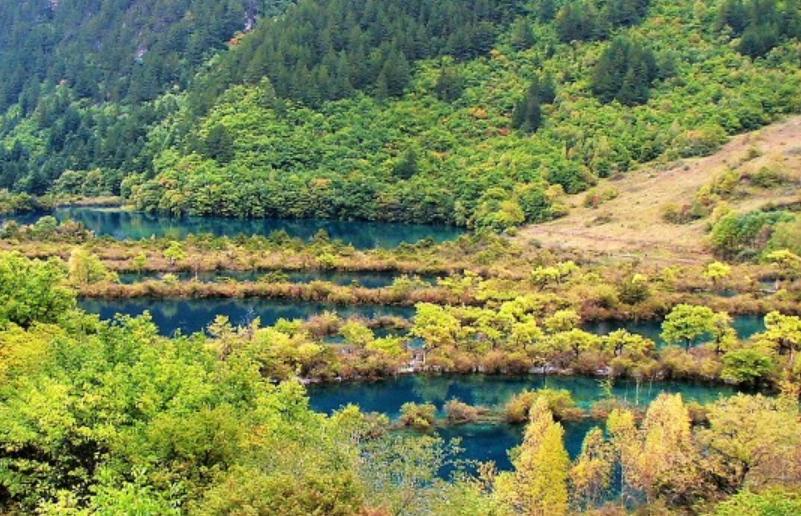 树正群海景区是九寨沟秀丽风景的大门。树正群海沟全长13.8公里,共有各种湖泊(海子)40余个,约占九寨沟景区全部湖泊的40%。40多个湖泊,犹如40多面晶莹的宝镜,顺沟叠延五、六公里。水光潋滟,碧波荡漾,鸟雀鸣唱,芦苇摇曵……盆景海、芦苇海、火花海、卧龙海、树正瀑布、老虎海……一路惊奇,一路美景,一路碧水,一路瑶池。