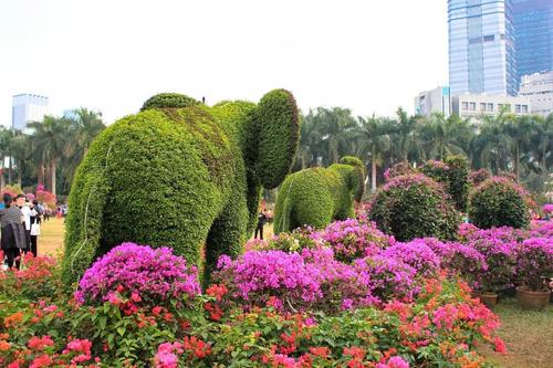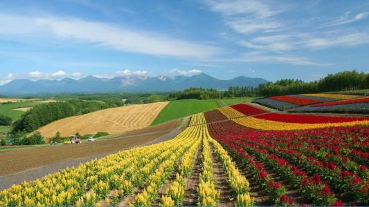 4.东部华侨城茶溪谷的四季花田约4.5万m2,由160余条红、黄、绿、紫、橙等色彩缤纷的花卉彩带组成,其中花卉品种20余种。