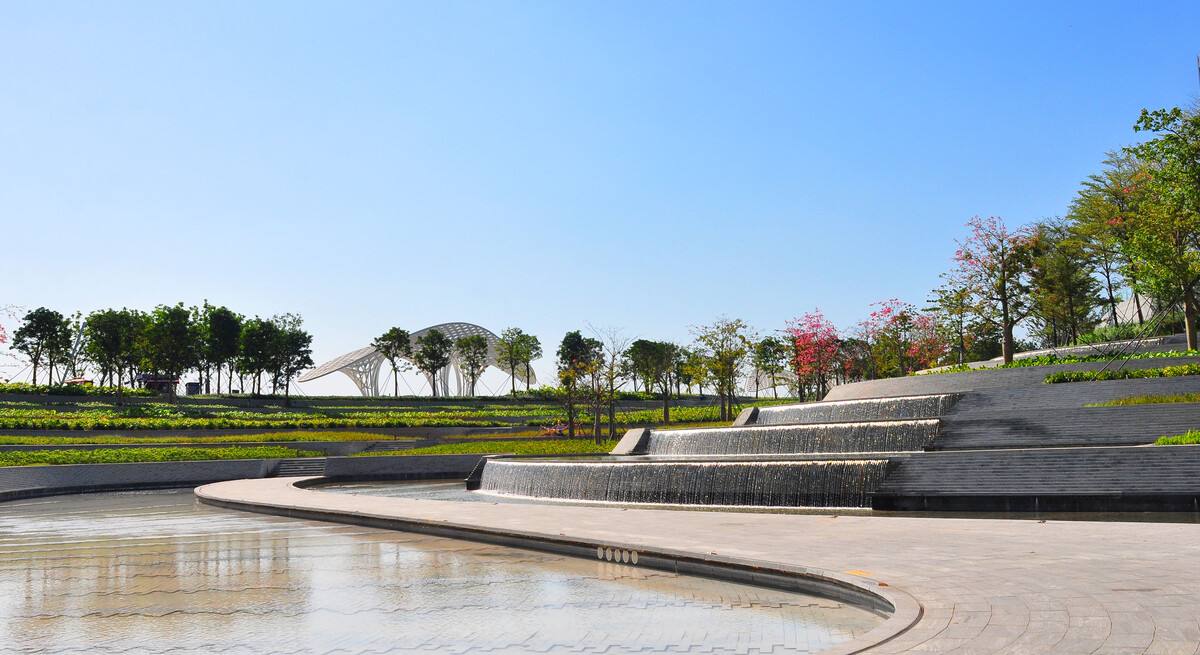 文化主题片区位于公园中部,由庆典广场、音乐喷泉、灯光秀水秀及演艺中心组成。