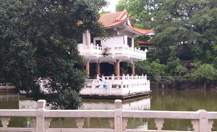 布吉公园的大门是一座颇具中国特色的建筑牌坊,分为左、中、右三个门,左右边两旁门较小,中门高大耸立,上书“布吉公园”四个大字。进入布吉公园正中是一处空地,空地进去,跨过小桥是一座颇大的凉亭和楼台,湖水环绕过凉亭和楼台,往左是一处面积颇大的人造湖,可供游人“划小艇”,再往上就是一座山丘,山丘顶端是一座三层高的“望亭”,可远眺整个布吉,也是整个公园的中心地带。