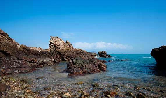 东冲的沙滩三面环山,礁石林立,一直到西冲的海岸线都具有自然的风貌,非常适合徒步,在山顶看海景也是不错的选择。