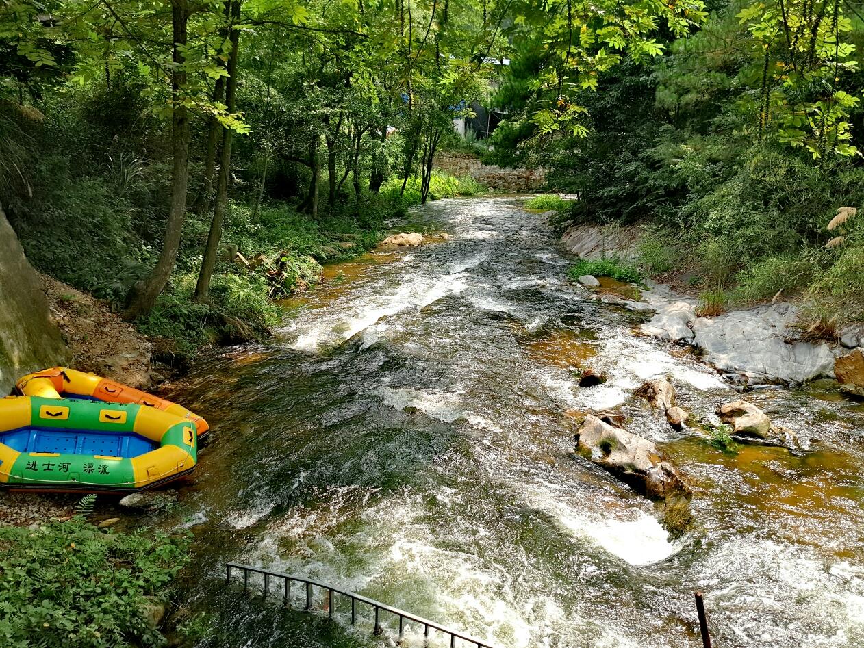 罗田进士河漂流河道全长6公里,落差187米,其中最大落差17米,最长滑到近百米,全程大小落差42处险滩35处,河道两岸植被茂密,古木参天,藤蔓盘根错节。河道中怪石林立,碧潭幽深,飞瀑成群,风光迷人。
