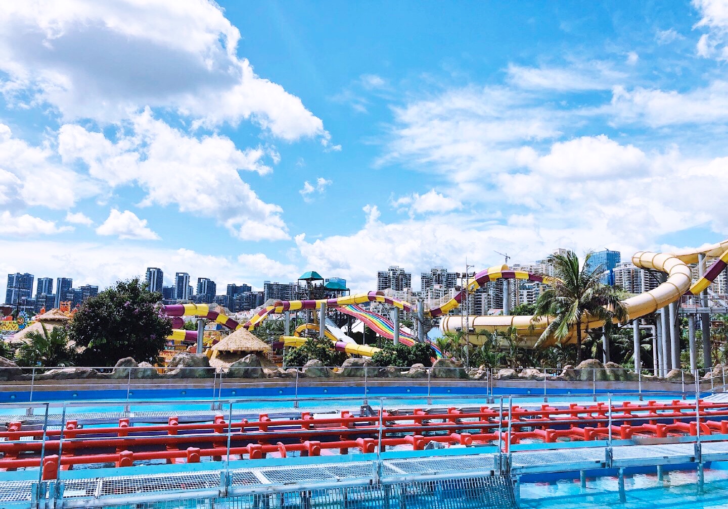 全园分为九大主题区:西班牙广场、魔幻城堡、冒险山、金矿镇、香格里拉·雪域、飓风湾、阳光海岸、欢乐时光和玛雅水公园。