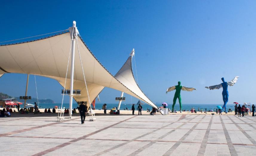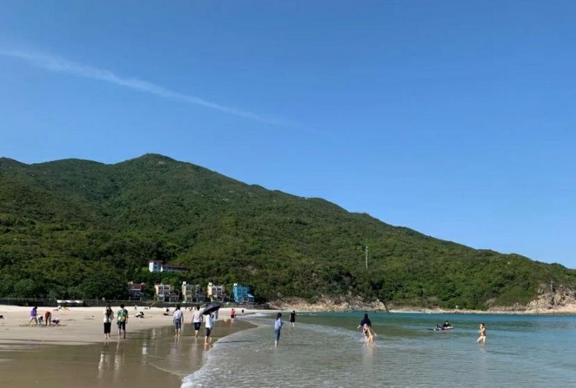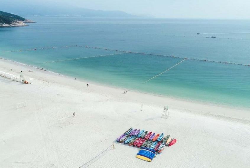 小梅沙是位于深圳东部大鹏湾绵长的海滩,素有“东方夏威夷”美誉。这里三面青山环抱,一面海水蔚蓝,环境幽雅,空气清新,秀山美水。远眺碧水蓝天一色,近观浪花阳光齐跃,岸边椰风摇曳、鸟语花香,置身如此人间胜景,或在海水中畅游、或在沙滩上游戏、或在礁石间捉蟹、或在海岸边拾贝,这里的沙滩可以露营,景区提供沙滩帐篷出租,有双人帐篷、四人帐篷、五人帐篷等,在沙滩泳具出租点租用。
