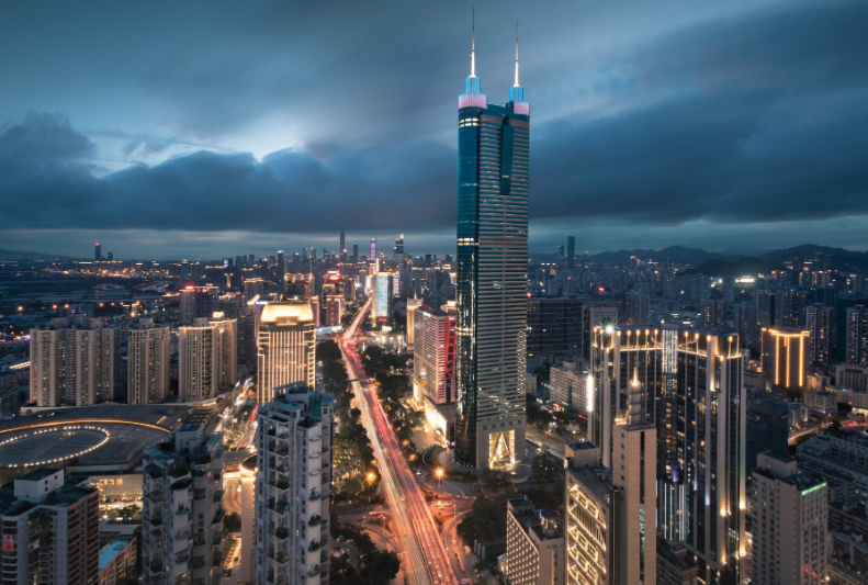 五、地王大厦地王大厦正式名称为信兴广场,这座楼曾经是深圳的第一高楼,虽然现在第一高楼的位置已经归京基100大楼,但它依旧是深圳著名地标。登上384米高的顶层69楼,往南可以眺望香港,向北可以俯瞰深圳。