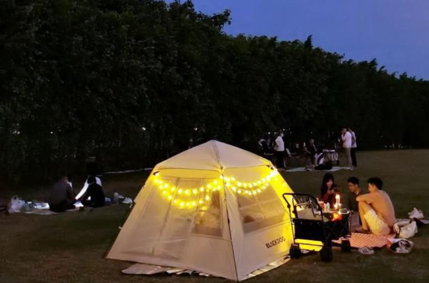 但是想要一定要去规定的地方,因为深圳湾公园并不是所有区域都可以搭帐篷的,只有海风运动公园才行。海风运动公园的帐篷去就在一个大草坪上面,地方比较空旷,还能直接开车到这边,而且最关键的是,前方就是大海,可露营时直接观赏海景。