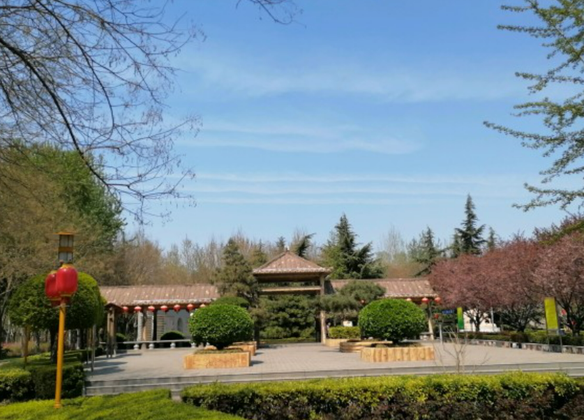 健身曲径连接公园主环路东西两端,路面由鹅卵石铺设而成。主入口两侧用艺术瓷片装饰的波形墙,将建筑、雕塑、色彩、光影、空间以及大自然环境融为一体,与艺术塔遥相呼应。