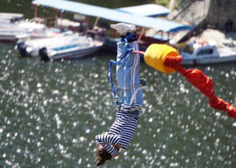 深圳首座双跳台高空蹦极于2020年3月30日开放,带游客从55米高的双跳台上一跃而下,两秒到达最低点,感受重力加速度带来的极致下坠体验!蹦极绳的拉开、绷紧、收回,让您在空中转体飞腾,在自由落体中感受血脉贲张,在心脉的悦动中战胜恐惧,释放压力!站在上面还可以360°感受欢乐谷无限美景。