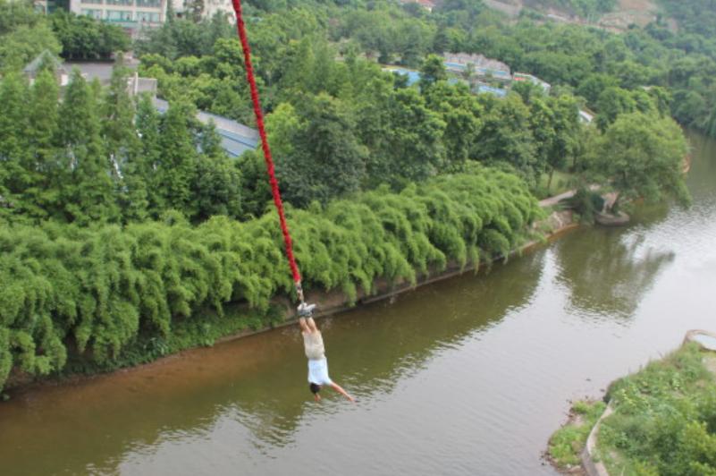 3、深度近视者也要慎重,因为蹦极的准备是由新西兰引进,采用的是踝部安全带,蹦极者跳跃时是头朝下,人的身体是以9.8米/平方秒的加速度自由下坠,很容易脑部充血而造成视网膜脱落。