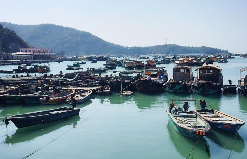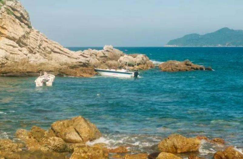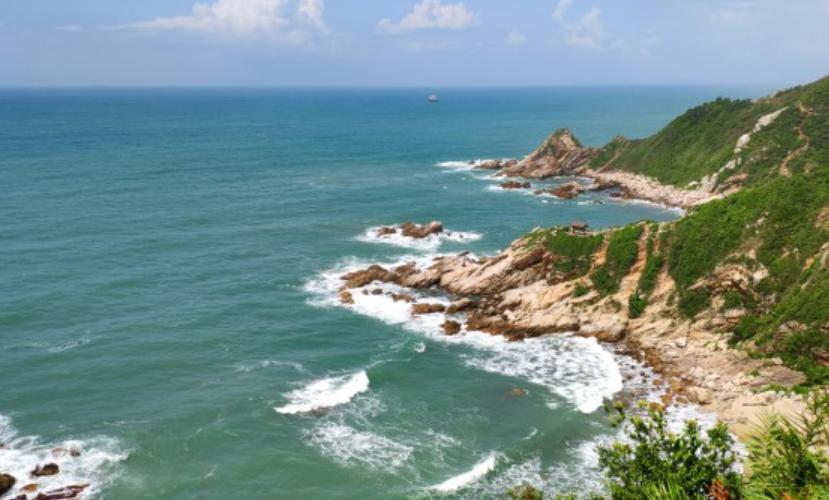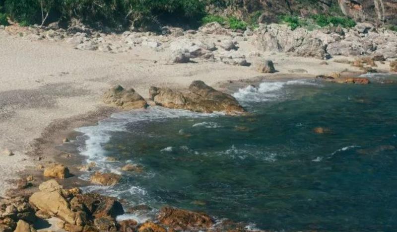 大湾海滩水清沙粗,从官湖继续走数分钟可到,在路边的山下就能看到大湾沙滩,当地村民在这里建了一些建议的游泳配套设施。