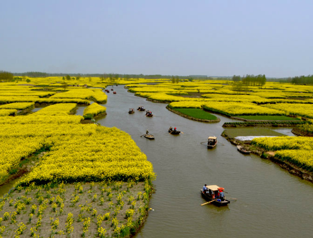兴化千垛景区又称:千岛菜花。是全球重要农业文化遗产,江苏省四星级乡村旅游点。每年清明时节,千垛景区四面环水的“垛田”上长满了金黄色的油菜花。一幅“油菜花开金满地”的壮阔美景,吸引了众多前来观光的游客。“河有万湾多碧水,田无一垛不黄花”正是兴化垛田菜花的真实写照。如今,千垛景区荷塘绿意更胜,更有另一番浪漫光景。春去秋来,在这千垛田间,见万寿菊花,黄叶纷飞,妍丽雍容,在重阳雨后,正值菊黄蟹肥时,看万花黄透,品水乡河蟹,真可谓美不胜收。入冬时节,看千垛景区芦花飞雪,苇絮悠然飘飞,弥天盖地,景色更是迷人。素有“全国最美油菜花海”之称的千岛油菜花,以千岛样式形成的垛田景观享誉全国,与享誉世界的普罗旺斯薰衣草园、荷兰郁金香花海、京都樱花并称,跻身全球四大花海之列。