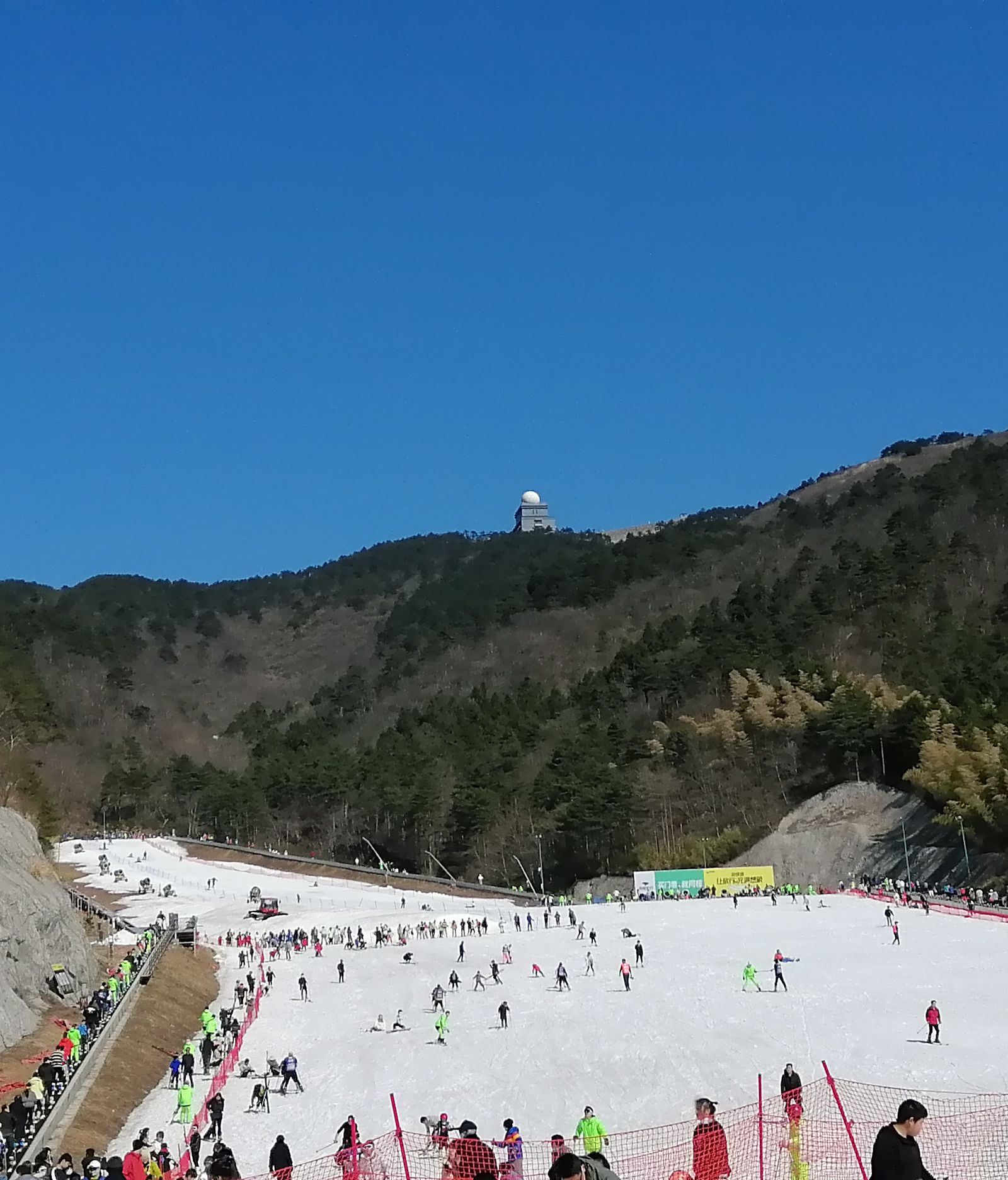 临安大明山滑雪场:临安大明山滑雪场是华东地区最大的室外滑雪场,位于杭州大明湖畔的万松岭,目前拥有5千平方米的戏雪区,5万平方米的专业滑雪区,可容纳1500人同时滑雪!