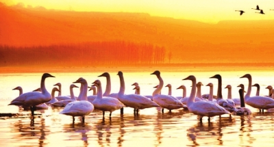 这里水禽云集、天鹅曼舞、鹤声阵阵,辽阔的黄河滩涂上,构成一幅万羽竞翔,鸟唱水吟的天然图画。目前到保护区落脚的鸟类有3.6万只,多于任何一年,其中世界罕见的丹顶鹤、大鸨、白鹤、黑鹳等国家一类保护动物,也频频在这块湿地显露“尊容”。
