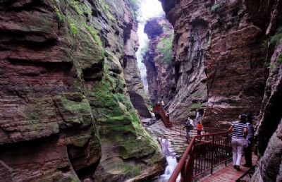 2.新安龙潭大峡谷。龙潭大峡谷景区位于洛阳市新安县北部,不仅是国家5A级景区,国家地质公园,还是洛阳黛眉山世界地质公园的核心景区,是一条以典型的红岩嶂谷群地质地貌景观为主的峡谷景区。洛阳龙潭大峡谷景区谷内关峡相望,潭瀑联珠,壁立万仞,峡秀谷幽,经过十二亿年的地质沉积和260万年的水流切割旋蚀所形成的高峡瓮谷、山崩地裂奇观,堪称世界一绝,人间少有,享有“中国嶂谷第一峡”、“古海洋天然博物馆”、“峡谷绝品”和“黄河水画廊”等美名。
