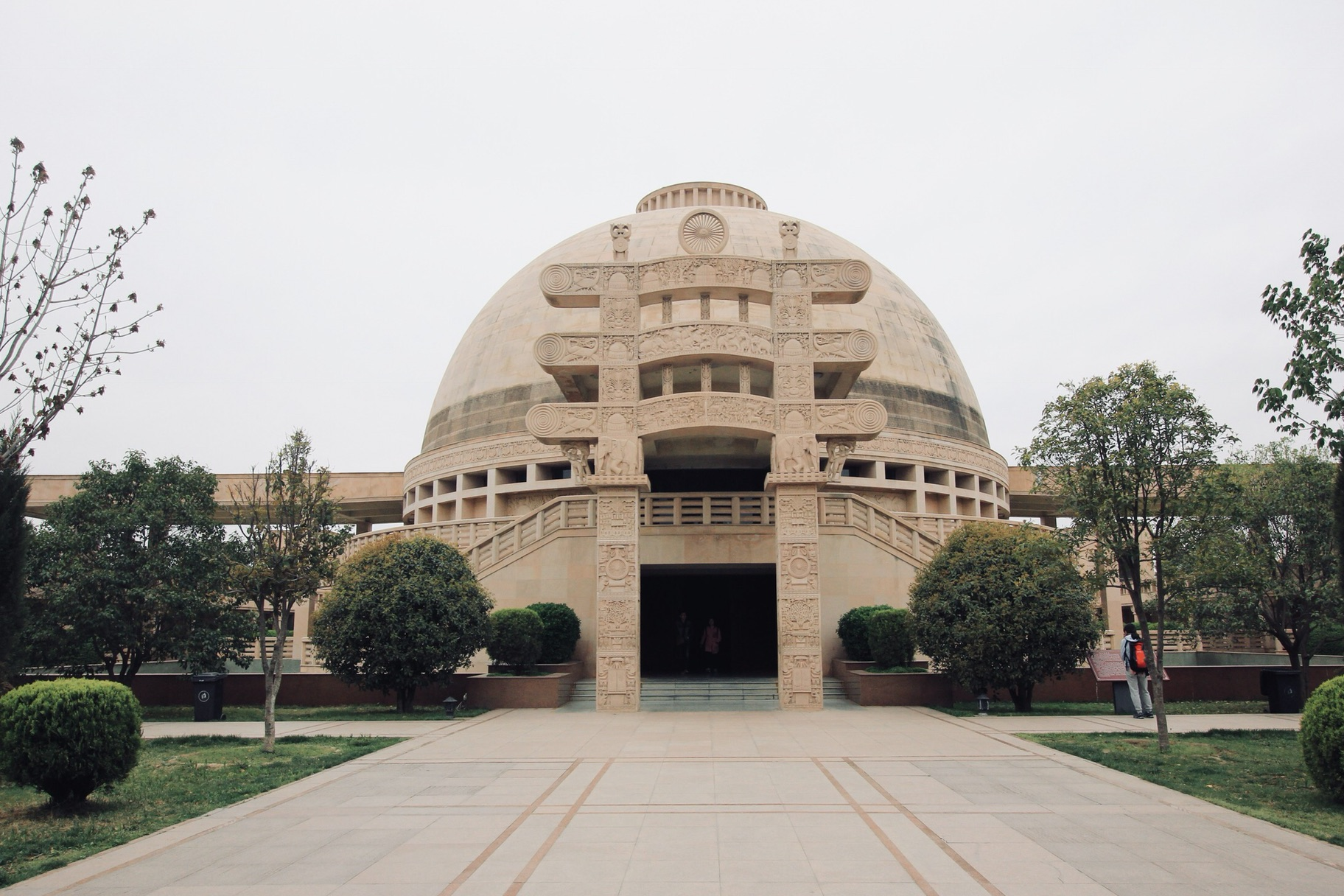 主体建筑布局规整,别具匠心。大佛殿中央供奉佛祖说法时的雕像,顶部安装有玻璃天窗,阳光从天窗透射下去,照射在佛像周围。大佛殿底部设计有水系,俯瞰大殿及水系,犹如盛开的莲花。