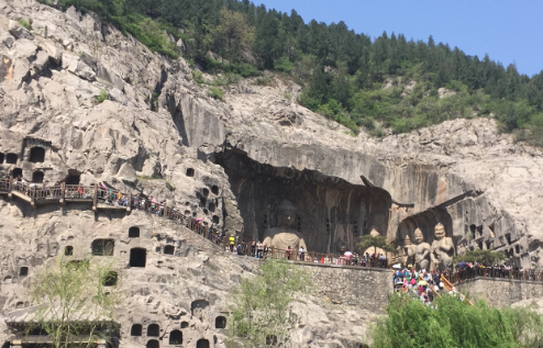 龙门石窟密布于伊水东西两山的峭壁上,南北长达1公里,共有97000余尊佛像,最大的佛像高达17.14米,最小的仅有2厘米;西山崖壁上有北朝和隋唐时期的大、中型洞窟50多个;东山全是唐代的窟龛,其中大、中型洞窟有20个。