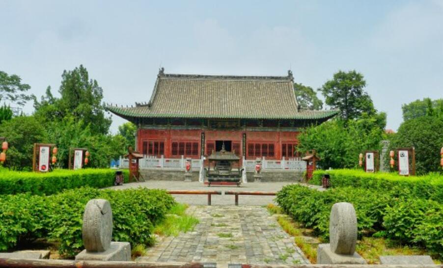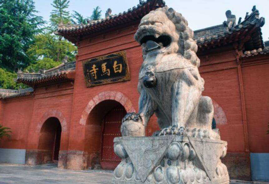 白马寺主要建筑有天王殿、大佛殿、大雄宝殿、接引殿、毗卢阁等,均列于南北向的中轴线上,寺庙建筑布局规整,风格古朴。乃佛教传入中国后官办的第一座寺院,被中外佛教界誉为释源、祖庭。