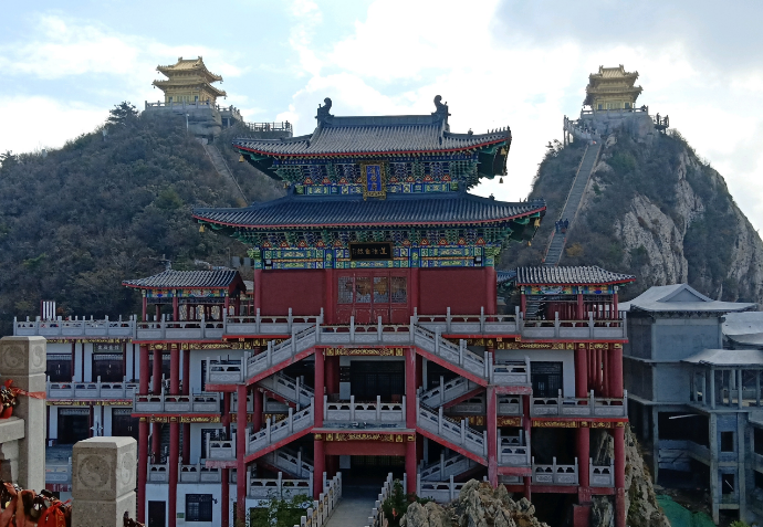 四、亮宝台亮宝台传说是太上老君展示宝贝的地方;有一年四月初八,各路神仙来景室听老君讲经,之后神仙们要求看看老君的镇山之宝,老君上到峰顶拿出了阴阳扇、太极图、炼丹炉。