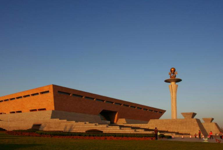 洛阳博物馆与中原明珠电视塔等城市地标性建筑遥相呼应,新馆建筑外形如大鼎屹立,寓意“定鼎洛邑”。博物馆由主楼和辅楼组成,主楼共两层,一楼是通展,二楼是博物馆的精品展。