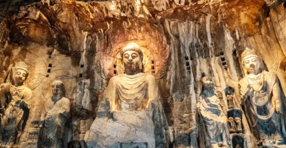 以卢舍那大佛为主佛的奉先寺,为龙门石窟开凿规模最大的摩崖像龛,堪称龙门石窟的“名片”,代表了中国唐代雕塑艺术的最高成就。