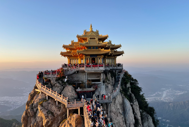 玉皇顶位于嵩县南部伏牛山腹地,海拔2211.6米,为中原第三峰,也是中原地区观赏日出、云海的最佳地理位置之一。玉皇顶因峰插天宫,顶如皇冠而得名。登上峰顶,可俯视三市六县风光。