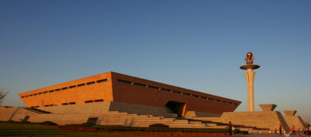 洛阳博物馆与中原明珠电视塔等城市地标性建筑遥相呼应,新馆建筑外形如大鼎屹立,寓意“定鼎洛邑”。