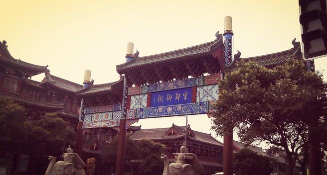第三:御街。御街在中山路的北段,它最北端就是龙亭公园的正门。据说是当年皇帝出行的通道。晚上的夜景很棒,两边有不少小吃摊和商城,是逛商场、吃美食的好去处。