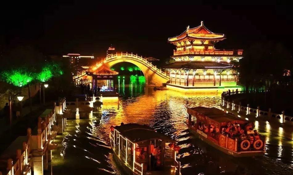 第四:大宋御河。吃完美食,不妨沿着大宋御河游览一下开封的夜景,坐游船的话,票价不贵,因为开封的河与湖都是通着的,所以几乎可以看遍开封的夜色美景了。