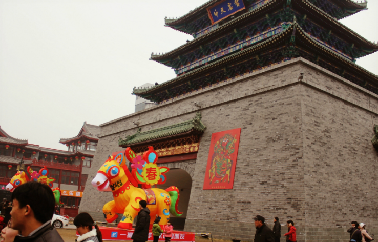 三、杞县钟鼓楼杞县钟鼓楼称鼓楼,坐落于县府前街路北。初建于元代,称齐政楼,明嘉靖二十年(1541)改建,称抚辰楼。楼高10余米,东西长21米,南北宽14米,占地面积294平方米。蓝砖砌筑台基,中留拱券,宽4米,高3.1米,为出入县府大门。