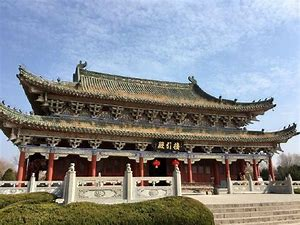 接引殿在铁塔的正前面,仿汉白玉砌成,系三门牌楼式仿宋建筑,宽70米,高12米,大门左右墙壁上,对称镶嵌着8块庄严、肃穆、圣洁青石神佛坐像,1986年为供奉北宋文物“接引佛”而建。