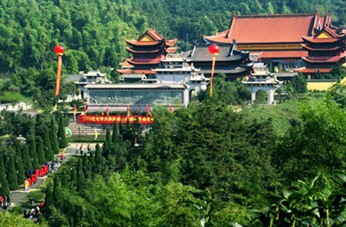 黄大仙祖宫坐落在双龙国家风景区内居鹿田湖畔,披皇岭仙境,占地7.9公顷,宫殿建筑群占地1.8公顷,海拔562.8米,进深716米,七进阶祖庭由19处宫楼、阁、台组成。