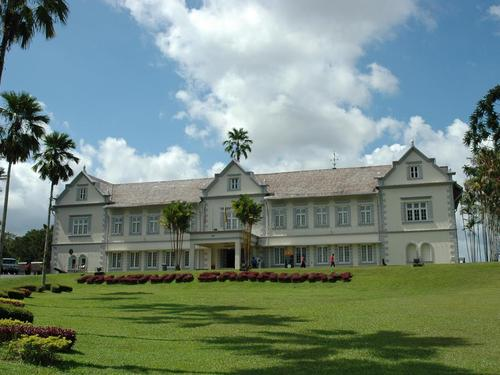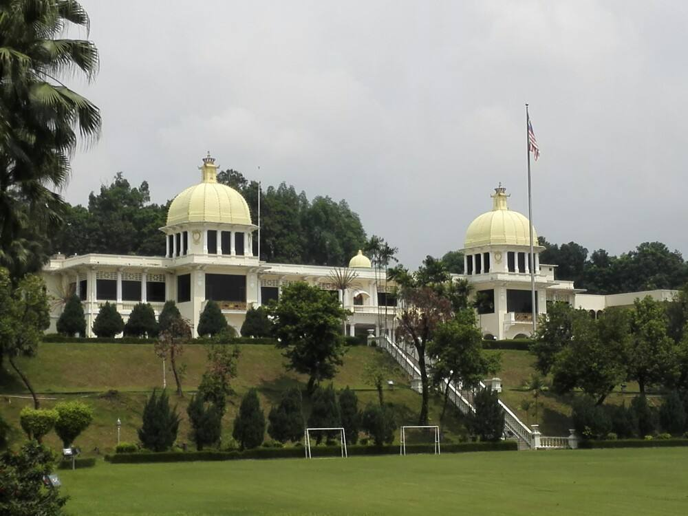 国家皇宫是马来西亚最高元首的宫邸,它坐落于赛布特拉路的八打灵山上,占地面积28英亩。国家皇宫最初原是一位陈振永华人富商于1928年修建的私人豪宅,在日本占领马来西亚的时候,它被改为日本军官举行宴会的会所。在日本投降以后,雪兰莪州政府买下这栋建筑物作为雪兰莪苏丹的官邸,直到1957年时,又转卖给0作为最高元首的官邸。皇宫的正门上有国徽和大红花的纹样装饰,正门两边的拱门有来自马来皇家军团的侍卫和骑卫站岗。穿过皇宫大门以后,在主车道的两旁种植了柏树和木麻黄树,同时有两条分别通往东翼和西翼的车道。
