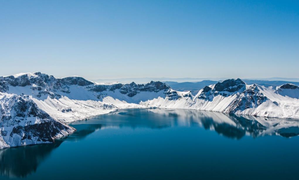 ,可以看见冰封的天池。