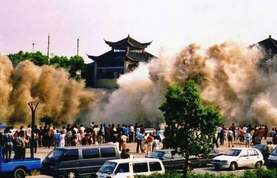 这里,有一道高9米、长650米的“丁字坝”直插江心,宛如一只力挽狂澜的巨臂。潮水至此,气势已经稍减,但冲到丁字坝头,仍如万头雄狮惊吼跃起,激浪千重。随即潮头转,返窜向塘岸,直向塘顶观潮的人们扑来。身临其境,让人拍案惊奇。