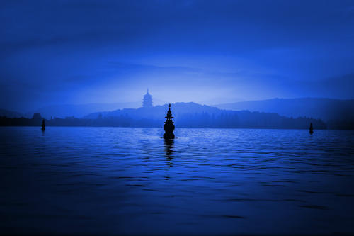 2.三潭映月。三潭印月是西湖十景之一,位于西湖中部偏南,与湖心亭、阮公墩鼎足而立合称湖中三岛,犹如我国古代传说中的蓬莱三岛,故又称小瀛洲。岛南湖中建成有三座石塔,相传为苏东坡在杭为官,疏浚西湖时所创设(现有石塔为明代重建)。塔腹中空,球面体上排列着五个等距离圆洞,若在月明之夜,洞口糊上薄纸,塔中点燃灯光,洞形印入湖面,呈现许多月亮,真月和假月其影确实难分,夜景十分迷人,故得名三潭印月。