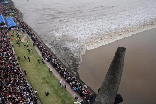 海宁地处钱塘江北岸,东距上海100公里,西与杭州相邻,是著名的观潮胜地。“八月十八潮,壮观天下无”,钱江观潮传统历史悠久,始于唐宋传承至今,观潮胜地以海宁最佳,形成了“一潮三看赏四景”的观潮特色,每年的观潮节都吸引了众多海内外的游客前来海宁旅游参观。海宁举办观潮节从1992年开始,春季和夏季观潮系列活动3次。观潮节和观潮系列活动已成为海宁市最亮丽的特色旅游经贸节庆活动。海宁潮,不仅是在每年的农历八月十八景色壮美,而且一年四季,月月有大潮,日日可观潮。钱塘江涌潮为世界一大自然奇观,钱塘观潮始于汉魏,已成为当地的习俗。中秋佳节前后为观潮最佳时节。钱塘潮分为交叉潮,一线潮,回头潮。
