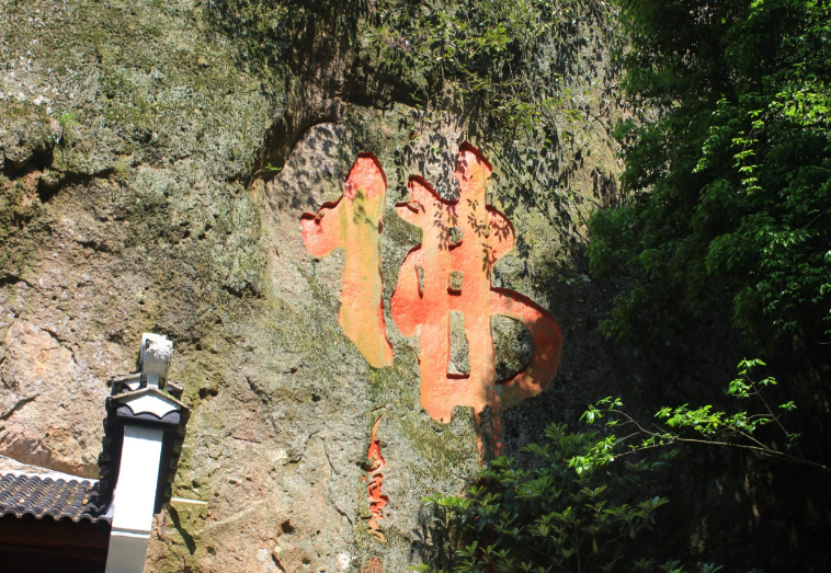 大慈岩的又一特色是长谷溪流。大慈岩山高坡陡,山顶谷中有玉华湖,水从谷口中流出,或因大石挡道成溪流,或奔腾直泻成瀑布,或渗于乱石丛中成泉水,或隐或显,或大或小,或急或缓,曲曲折折直至山脚,形成一条800多米长的山水相映的秀丽景观。大慈岩的再一特色是全国最大的天然立佛。从侧面看整个大慈岩主峰就是一尊地藏王菩萨的立像。它身高147米,其中头部高41.3米,宽60米,由奇石、怪洞、草木和谐地组合成大佛的五官,惟妙惟肖,形象十分逼真。经旅游专家鉴定,已被命名为“全国最大天然立佛”,被誉为“中华一绝”。而大慈岩也因“山是一尊佛,佛是一座山”的稀有自然景观而名扬四海,载入《中国之最》。