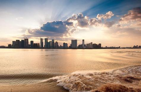 钱塘江,古称浙,全名“浙江”,又名“折江”、“之江”、“罗刹江”,一般浙江富阳段称为富春江,浙江下游杭州段称为钱塘江。钱塘江最早见名于《山海经》,因流经古钱塘县(今杭州)而得名,是吴越文化的主要发源地之一。