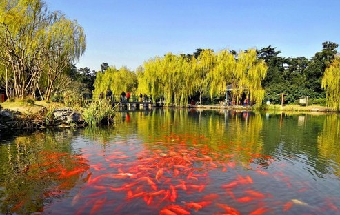 花港观鱼在苏堤映波桥西北197米处,介于小南湖与西里湖间,范围约0.25公顷。以赏花、观鱼为景观主题,体验自然的勃勃生机。春日里,落英缤纷,呈现出“花著鱼身鱼嘬花”的胜景。“花港观鱼”位于南宋时官员卢允升的别墅内,因所在位置水域名花港,别墅内凿池养鱼,故名“花港观鱼”。该景观单元现存御碑、御碑亭、鱼池及假山等遗址。