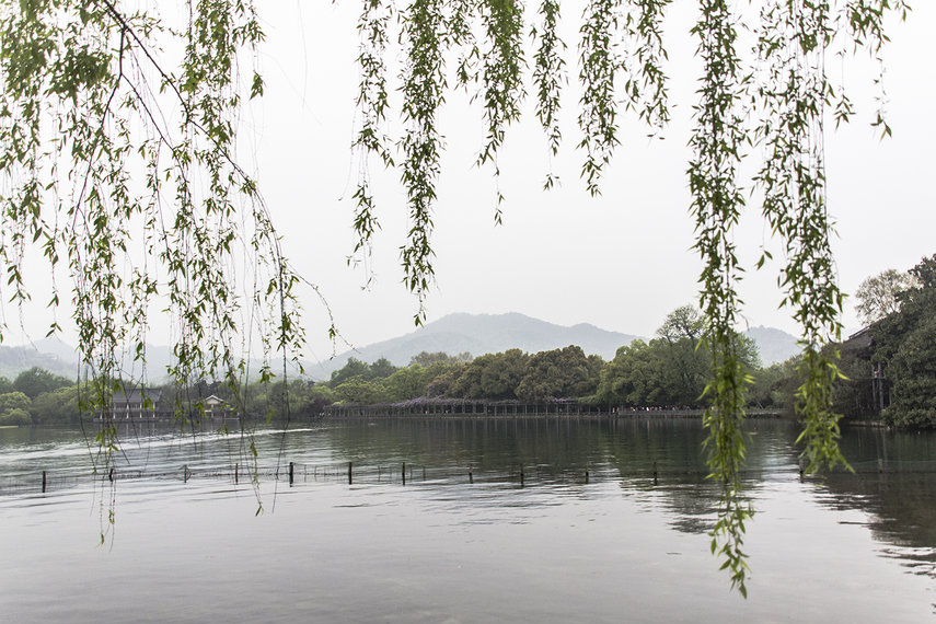 苏堤春晓位于西湖的西部水域,西距湖西岸约500米,范围约9.66公顷。北宋元祐五年(1090年),著名文人苏轼用疏浚西湖时挖出的湖泥堆筑了一条南北走向的长堤。堤上建有六桥,自南向北依次命名为映波桥、锁澜桥、望山桥、压堤桥、东浦桥和跨虹桥。后人为纪念苏轼,将此堤命名为“苏堤”。苏堤自北宋始建至今,一直保持了沿堤两侧相间种植桃树和垂柳的植物景观特色。春季拂晓是欣赏“苏堤春晓”的最佳时间,此时薄雾蒙蒙,垂柳初绿、桃花盛开,尽显西湖旖旎的柔美气质。
